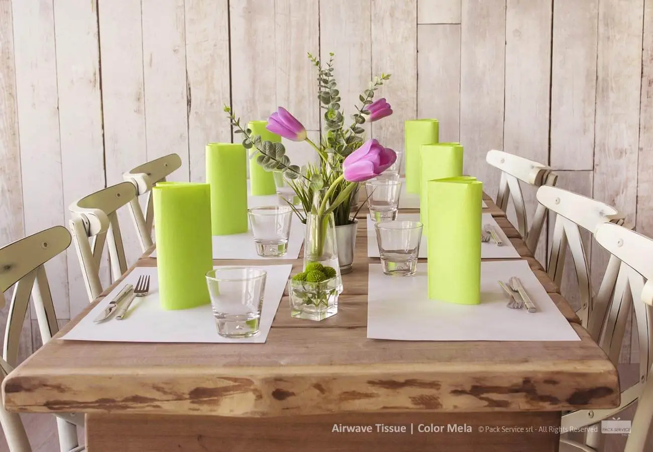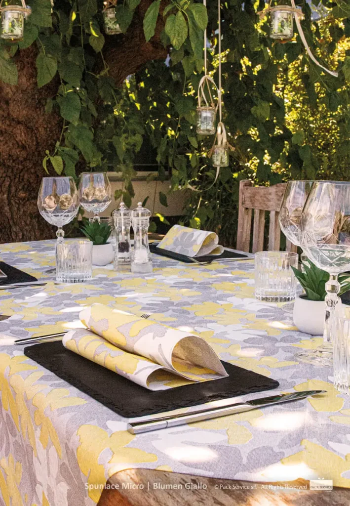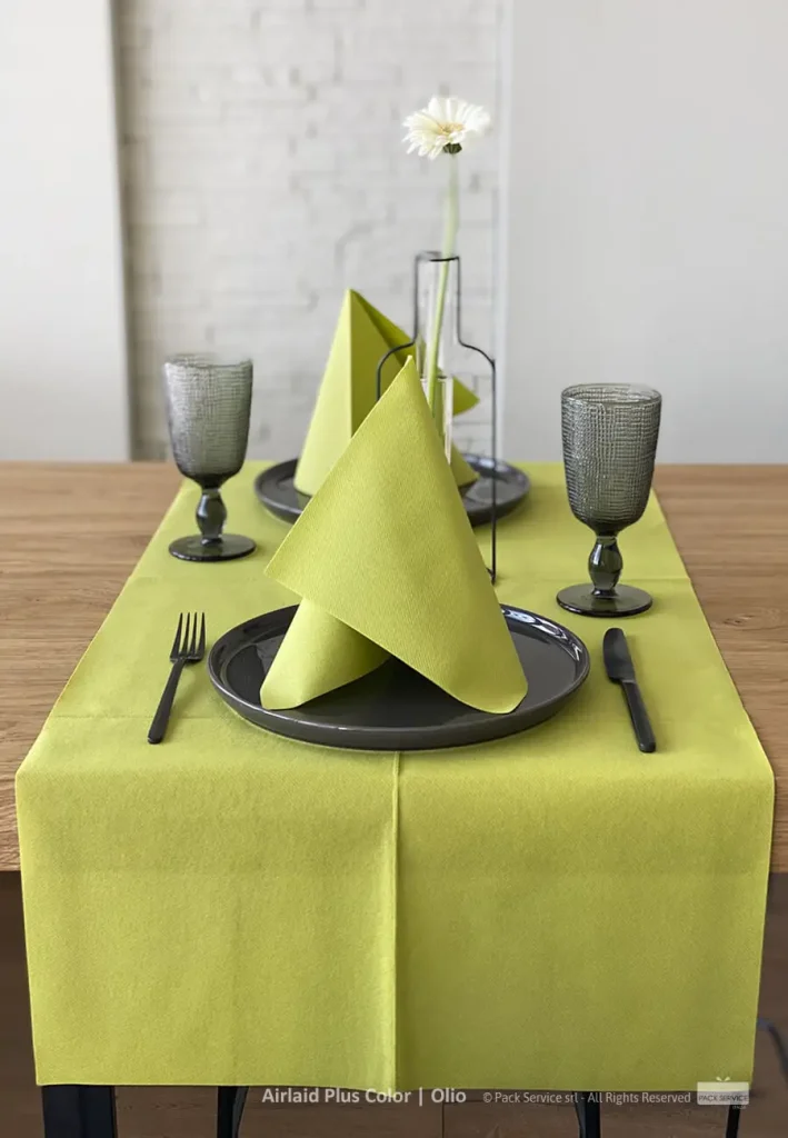Die Pack Service Tischwäsche sind ein ausgezeichnetes italienisches umweltfreundliches Produkt, gedacht um die verschiedenste Tische und Räume mit Stil und Leichtigkeit zu decken