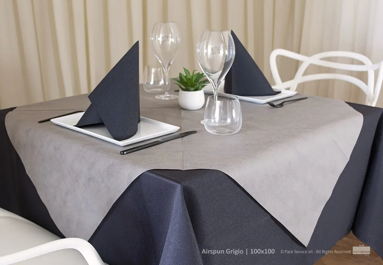 AIRSPUN ist die Tischdeckenpalette aus Polypropylen-Vliess, in Italien hergestellt mit zertifizierten Rohstoffen.