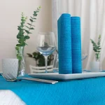 Die Zellulosefasern werden mit Lufttechnik „trocken“ verarbeitet und mit EVA-Kleber verklebt. Mit dieser fortschrittlichen Technik erhalten wir ein dem Stoff sehr ähnliches Ergebnis. Ein ausgezeichneter Einwegartikel, der den Tisch mit Stil und Zweckmäßigkeit ausstattet.